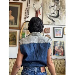 80s Rare Vintage Denim Jacket w Acid Washed Accents Mens Size Small