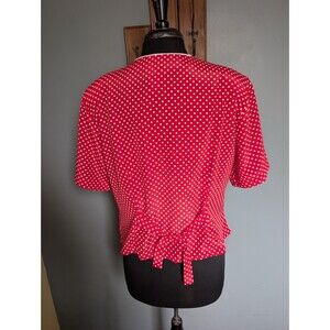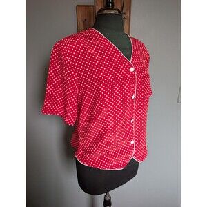 80s Red Polka Dot Short Sleeve Blouse, Vintage Womens Top Size L