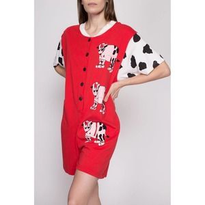 80s Retro Cow Romper - Medium to Large | Vintage Loungewear Playsuit Outfit