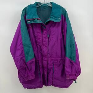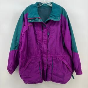 80s Retro Vintage Columbia Jacket Purple & Teal Baggy Multiple Pockets XL