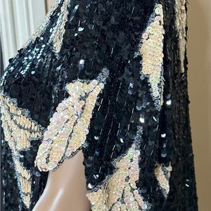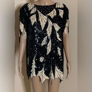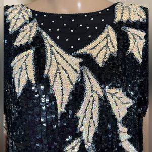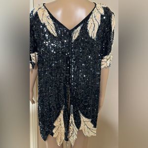 80’s Sequins & Beads Flapper Mini Dress Tunic Black & Blush SPARKLING EUC Sz S/M