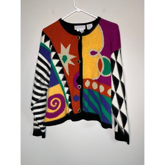80s Shannan Wool Angora Metallic Rainbow Maximalist Art To Wear Clown Cardigan L