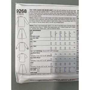 This Simplicity 9268 sewing pattern includes 22 pieces to create girls' skirts, blouses, and an unlined jacket. Detailed sewing instructions ensure precision for a complete wardrobe ensemble.