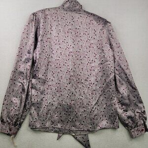 80s Size 8 Flowy Neck Tie Leaf Print Blouse Feminine Romantic Dainty Whimsical