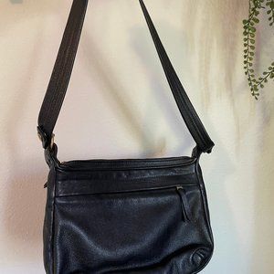 Cute, classic black leather shoulder bag by Avery Studios in Oregon. In fantastic shape and all zippers(dull gold color) in perfect working condition. A perfect night-out purse with room for everything you need.