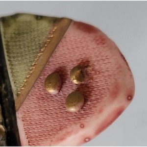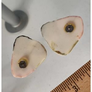 80s style post earrings. Abstract design with pinks and golds. Likely made of clay.