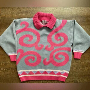80s Sweater THAT’S ME retro polo collar pink gray swirl RARE EUC Valentine’s Day