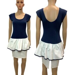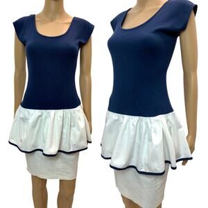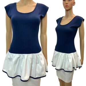 80s T Shirt Pencil Skirt Peplum Dress | Blue and White | Fits XXS/XS