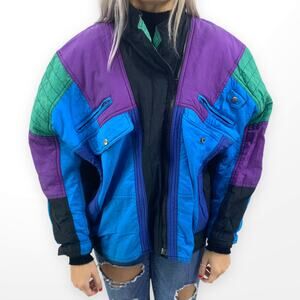 80s TOGETHER Vintage Blue and Purple Colorbock Ski Jacket