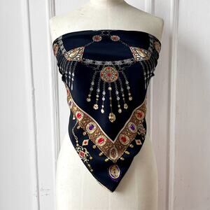 Delightful jewelry themed status print scarf. Vintage from the 80s, when bling was everything!