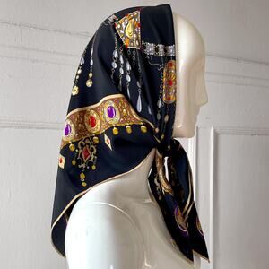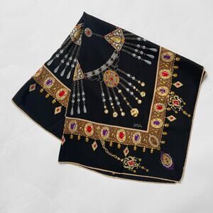 80s Trompe L'Oeil Jewel Status Print Vintage Silk Square Scarf Headscarf CASCA