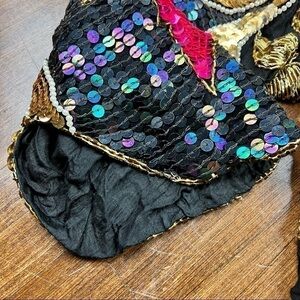 80s VTG Chanson D'Amour Glam Sequins 100% Silk Party Cocktail Evening Top Medium
