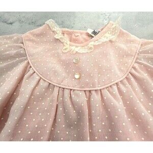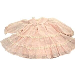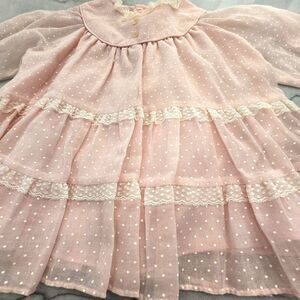 80s VTG Cinderella Dress Girls 12 Months Pink Swiss Dot Lace Tiered USA ILGWU