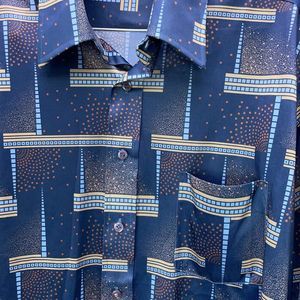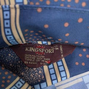 80s VTG Kingsport Colorblock Blue Long Sleeve Button-Up Shirt Mens Size XL Korea