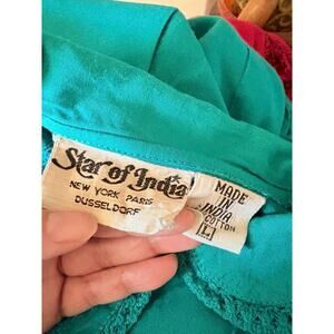 80s VTG Star of India Teal Women's Blouse Peter Pan Collar Boho Cotton Size S