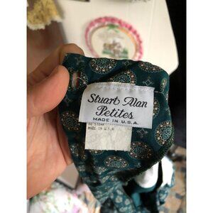 80's VTG Stuart Alan Petites green geometric patterned lace midi length day dres