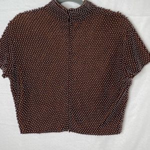 80's VTG VIE by Victoria Royal Brown Pearl Beaded Crop Top Size 12