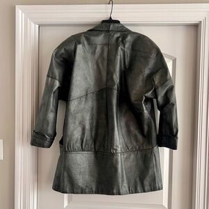 80s Vintage Avanti Leather Coat Blazer Open-Front Draped Metallic Grey Silver