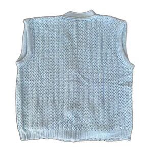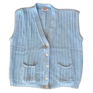 80s Vintage Baby Blue Sleeveless Sweater Vest Knit Cardigan Top size XXL