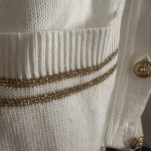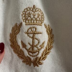 80s Vintage | Bay Point Threads | Nautical Gold and White Crested Cardigan Large