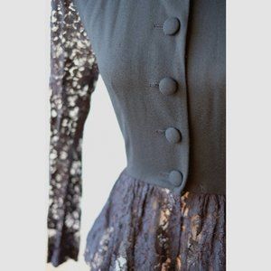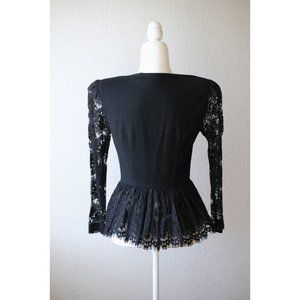 80s Vintage Black Lace Button-Up with Shoulder Pads