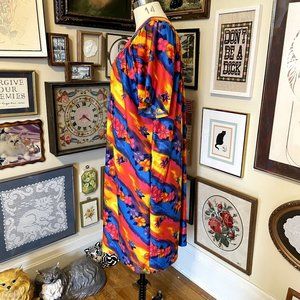 80s Vintage Blue Yellow Red Orange Psychedelic Floral Sunset Midi MuuMuu OSFM