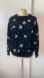 Sparkling 80s vintage fashion collectible sweater adorned with sequin stars and scattered rhinestone pattern. Perfect for adding a touch of sparkle to your wardrobe!