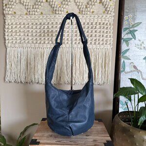80s Vintage Brio! Navy Blue Genuine Leather Squishy Knotted Shoulder Hobo Bag