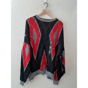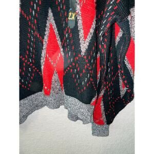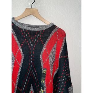 80s Vintage Bronzini Red Black Design Sweater Outerwear 1980s VTG 2XL