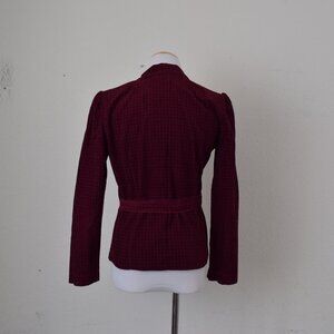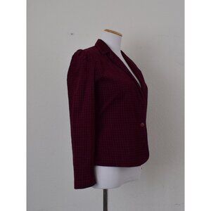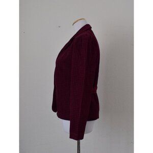 80s Vintage Burgundy Plaid Fitted Poly/Cotton Corduroy Jacket