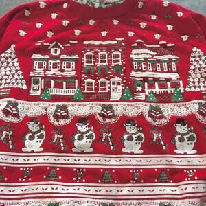 retro Christmas, holiday sweater, vintage sweatshirt, 80s knit, festive clothing, oversized sweater, embroidered design, seasonal apparel, colorful sweater, nostalgic fashion