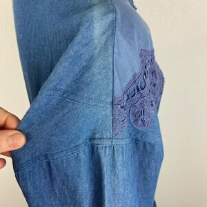 vintage jean, vintage denim, denim dress, jean dress, vintage buttons, applique, lace, teacher, school days, old school, retro, 80s vibe, country, cowgirl, western, unique, one of kind, rare, maxi