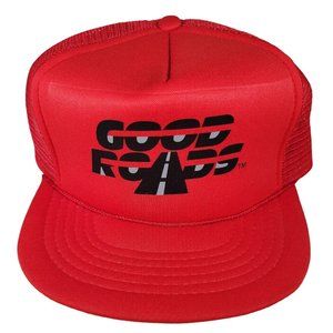 80s Vintage GOOD ROADS Hat Snapback Trucker Cap USA Red Mesh Foam Street Race