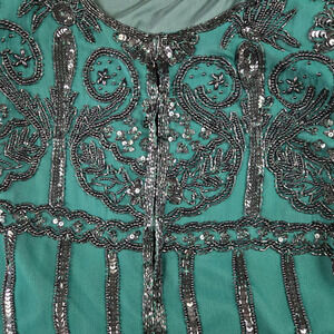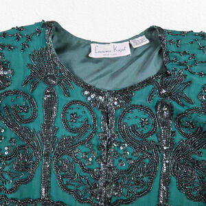80s Vintage Green Black Silk Beaded Sequin Cropped Designer Jacket Size Large