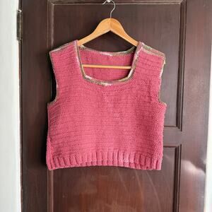 80s Vintage Hand Knit Pink Square Neck Sweater vest | Size Large / Extra Large