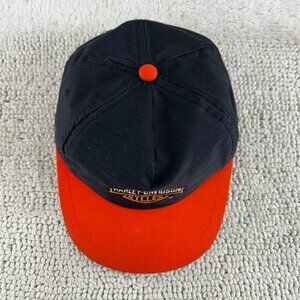 80s Vintage Harley Davidson Strap Back Hat OSFA Two Tone Trucker Cap Orange Blac