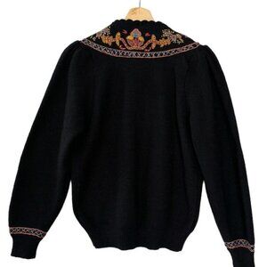 80s Vintage Herman Geist Black Wool Hand Embroidered Cardigan Sweater Size Small