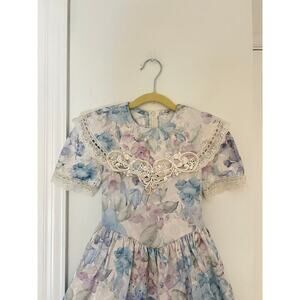 80s Vintage Jessica McClintock Girl's Pastel Floral Special Occassion Dress