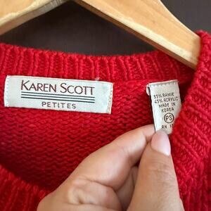80s Vintage KAREN SCOTT | Chunky Knit Christmas Sweater Cardigan | Small Petite