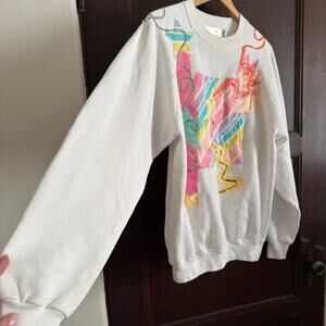80s Vintage Marcia White and Neon Spandex Sequin Sweatshirt Oversized | Medium