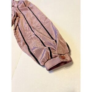 80s Vintage NOTCHES - SM/ SIZE 5 - Pink Black Striped Silk Blouse Puff Sleeves
