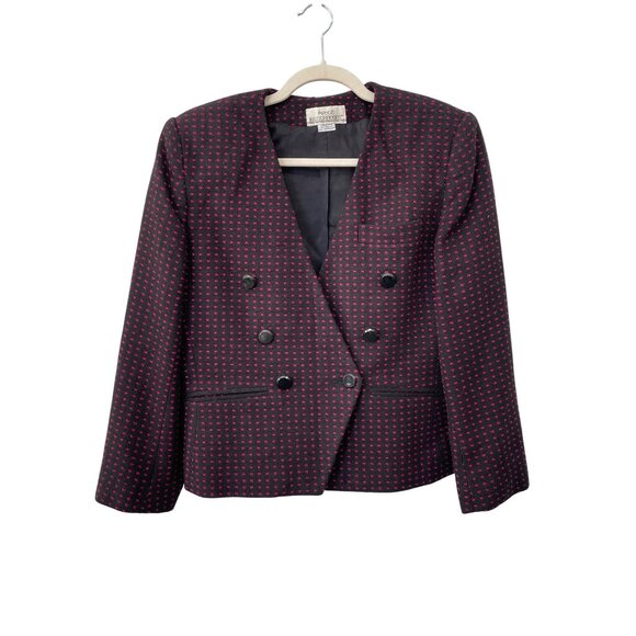 Vintage 80s Petite Illustrations Blazer Jacket Size 8 Black Pink Wool Blend Office