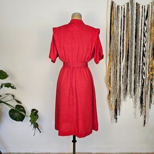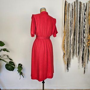 80's Vintage Red Midi Dress with Belt _ Rhodes Collections Inc