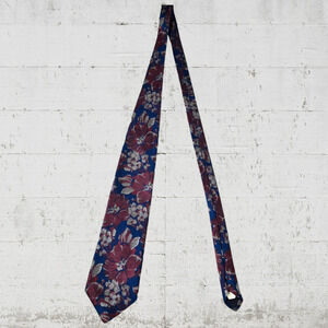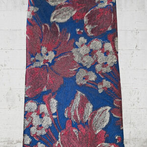80s Vintage Red Navy Floral Textured Retro Design Studios Neck Tie 3.75 x 59