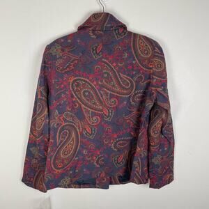 80s Vintage Retro Paisley Tapestry Blazer Jacket Womens M Navy Blue Red Western