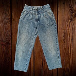 Rock some 1980s style with these size 11, waist comes out to a out 28", vintage stonewash, high waist 'mom' jeans. Please note, these have been cut off and sewn into capris, measurements in pics.