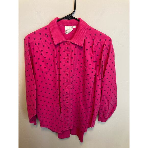 80's Vintage Sweet Baby Jane Long Sleeve Collared Polka Dot Button Up Size Large
