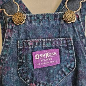 80s Vintage | Toddler Oshkosh Floral Denim Overalls Purple and Green Made in USA 2T | Baby Toddler Kids Vintage Clothing