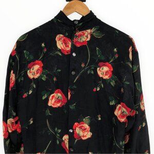 80’s Vintage Ungaro Rose Print Silky Blouse Long Sleeves