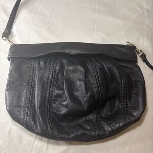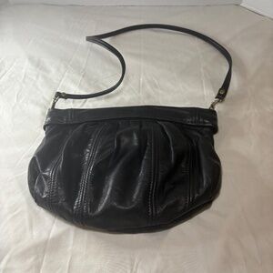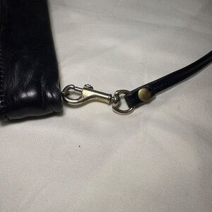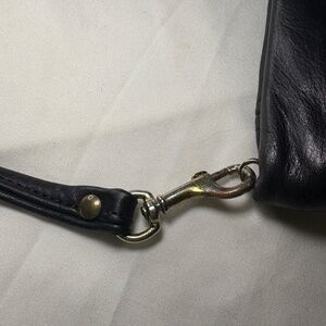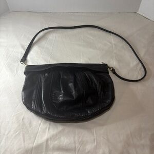 80s Vintage Victoria Leather Co Black Clutch/Shoulder Bag Hinged Opening
